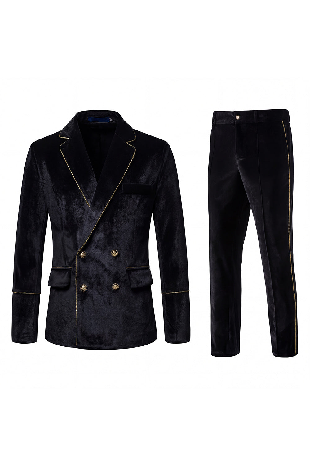 Zwarte fluwelen pakjes met revers dubbelgeknoopte herenpakken