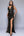 Sprankelende zwarte pailletten halter zeemeermin galajurk met split
