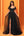 Zwarte A-lijn spaghettibandjes bloemen ruches tule lange galajurk met split