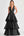 Zwarte chiffon formele jurk met lange mouwen en ruches