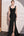 Zwart Wit Schede Spaghetti Bandjes V Hals Lange Galajurk Met Split Aan de Voorkant