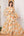 Gele gebloemde chiffon A-lijn V-hals lange mouwen lange galajurk