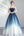 Lichtblauwe A-lijn galajurk met bloemenprint en ruches