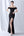 Sprankelende zwarte korset spaghettibandjes lange galajurk met split