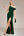 Donkergroene off-the-shoulder sprankelende galajurk met split