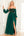 Off the shoulder donkergroene gelaagde galajurk met ruches