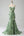 Een lijn groen korset lange tule galajurk met 3D vlinders split voorkant