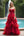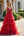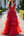 Sprankelende rode baljurk diepe V ruches tule lange galajurk met kralen