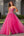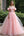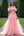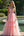 Roze spaghettibandje een lijn lange opgestikte gegolfde galajurk