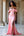 Roze zeemeermin spaghettibandjes satijnen lange galajurk