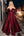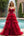 Sprankelende rode A-lijn diepe V-hals ruches baljurk met kralen