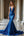 Koningsblauwe schede V-hals kanten kralen lange galajurk met split