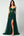 Donkergroene satijnen off-shoulder lange galajurk met split