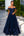 Navy Tule Off the Shoulder A-lijn Lange Galajurk met Appliques