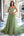 Stoffige salie tule off-shoulder A-lijn lange galajurk met kanten applicaties