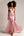 Sprankelende spaghettibandjes korset roze galajurk met split