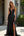 Sprankelende zwarte pailletten halter zeemeermin galajurk met split