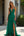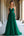 Donkergroene A-lijn kanten V-hals satijnen lange galajurk