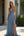 Blauwe schede geplooide spaghettibandjes lange galajurk