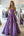 Kant satijn donker paarse schede diepe V-hals galajurk