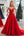 Rode Prinses Deep-V-hals Tule Gelaagde Lange Galajurk met Kralen