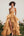 Sprankelende gouden metallic halterhals A-lijn lange galajurk