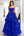 Prinses satijn koningsblauwe spaghetti bandjes galajurk met appliques