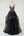 Zwarte A-lijn spaghettibandjes bloemen ruches tule lange galajurk met split
