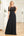 Zwarte A-lijn V-hals korte mouwen pailletten galajurk