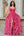 Felroze A-lijn spaghettibandjes geplooide sprankelende galajurk met split