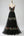 Zwarte bloem geborduurde zeemeermin galajurk met zijsplit