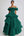 Groene pailletten A-lijn tule lange galajurk met vetersluiting op de rug