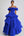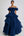 Hemelsblauwe zeemeermin lange galajurk met ruches en V-hals