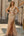 Champagnekorset Een lange jurk met kralen in lijn met gerimpelde kralen en kant op de rug