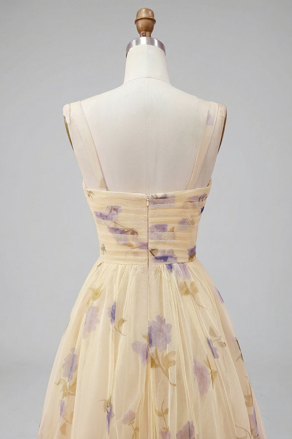 Geel Bloemen Een Lijn Met Raffe Ruffle Lange Galajurk