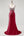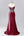 Rode schede korte mouw satijn diepe V-hals lange formele jurk
