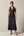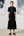 Zwarte A-lijn kraag hals bruiloft gast jurk met mouwen