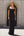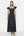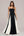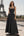 Een lijn vierkante hals lange zwarte jurk met witte stippen