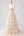 Abrikoos Een lijn met kralen versierde korset met gerimpelde lange galajurk met kant op de rug