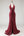Donkerrode halter met kralen meerminnenveter achterop lange galajurk met split