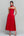 Rode strapless A-lijn lange omgezette satijnen jurk met zakken