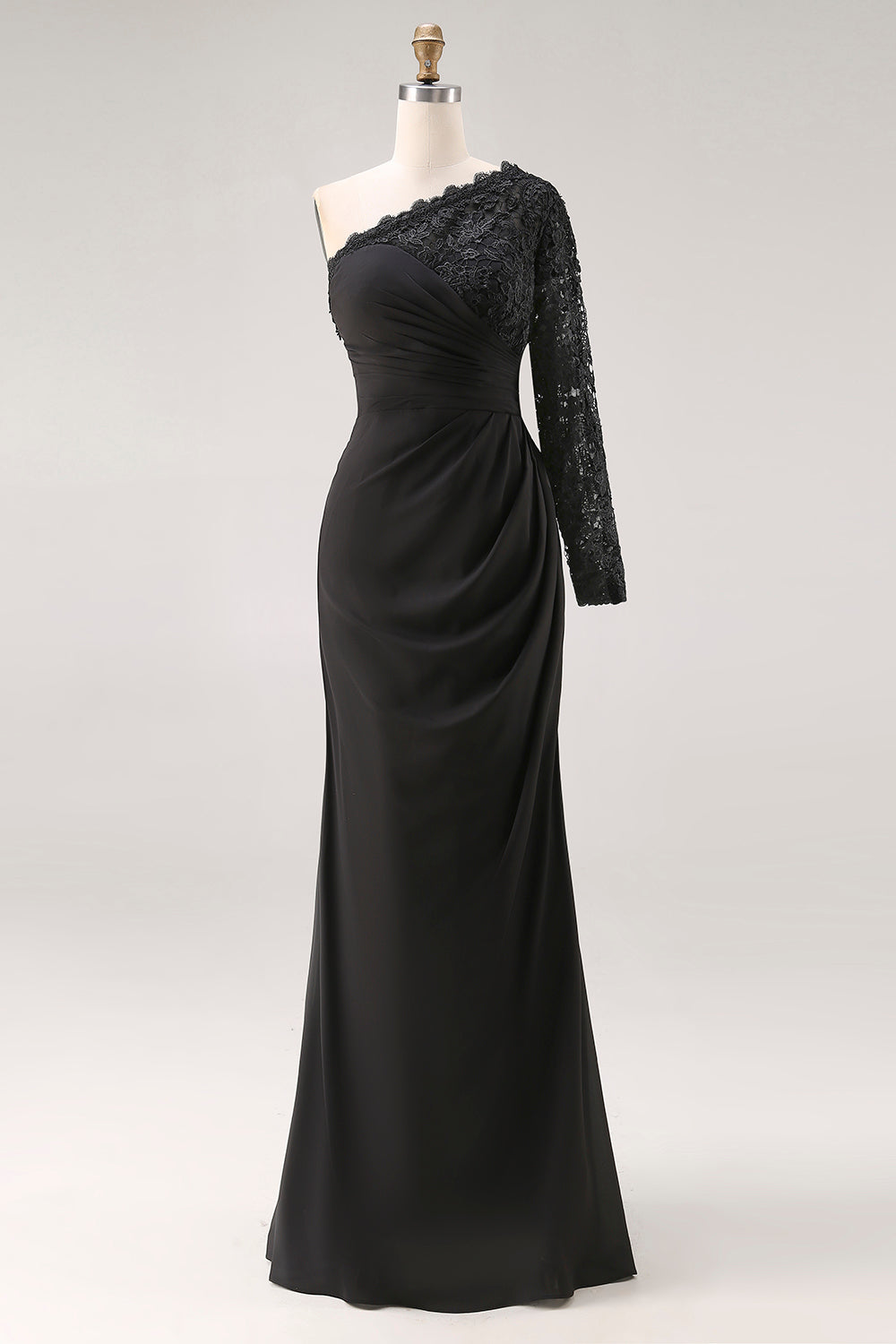 Zwarte eenschouder zeemeermin plus maat moeder van de bruid jurk met kant