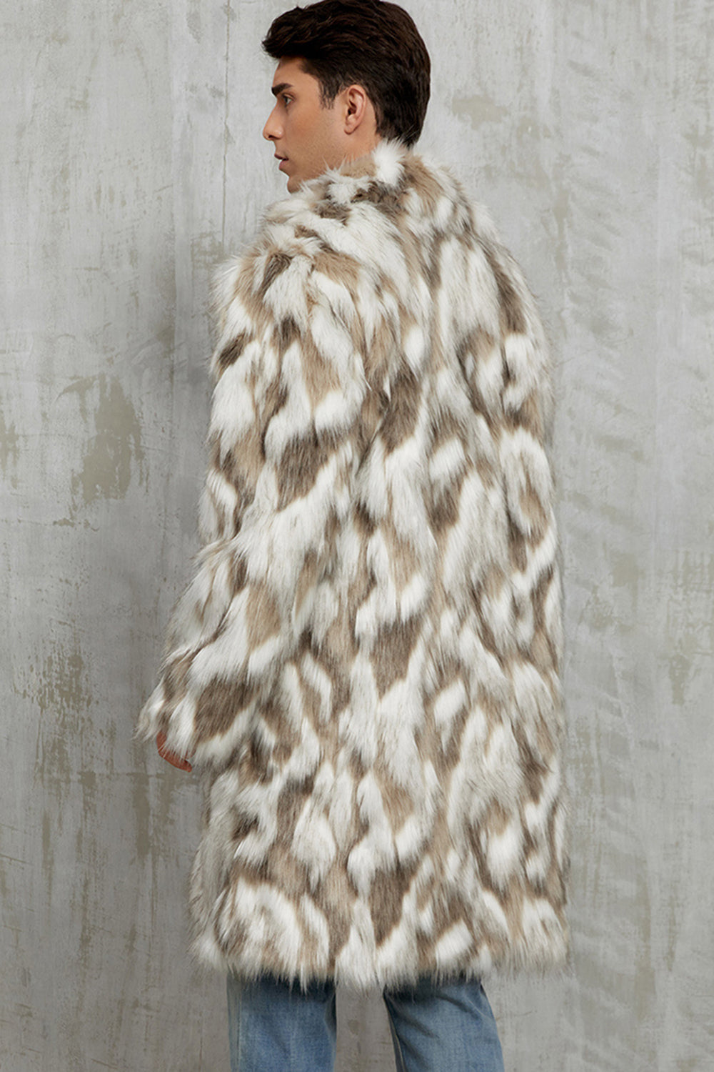Grijze imitatiebont inkeping revers lange winter herenjas