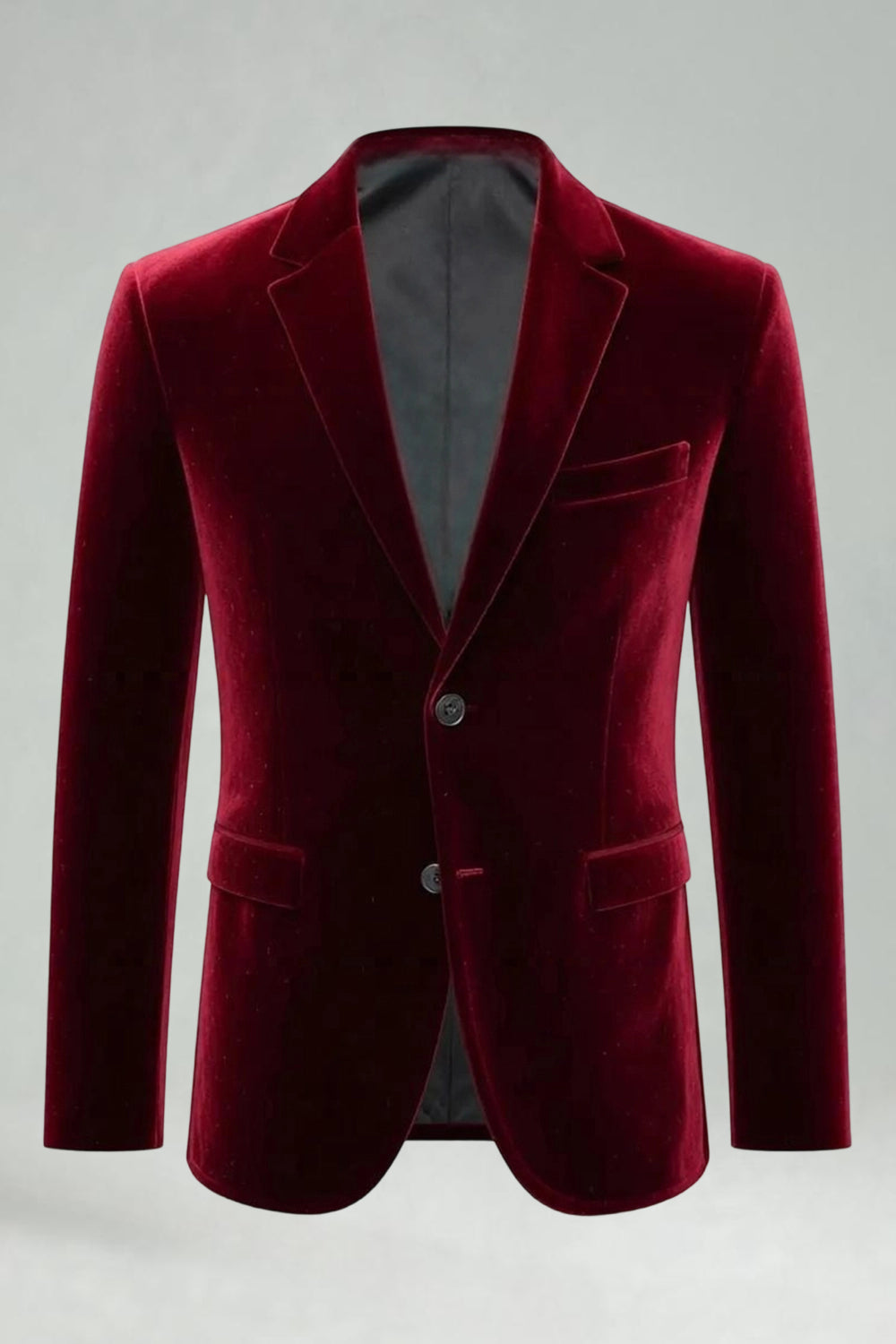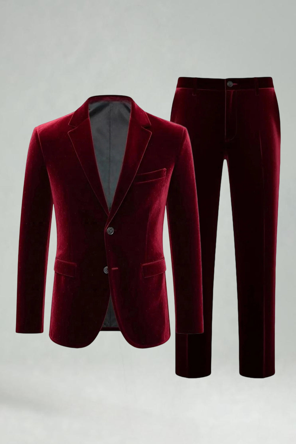 Bordeauxrode fluweel 2-delige genotched herenbalpakken voor heren