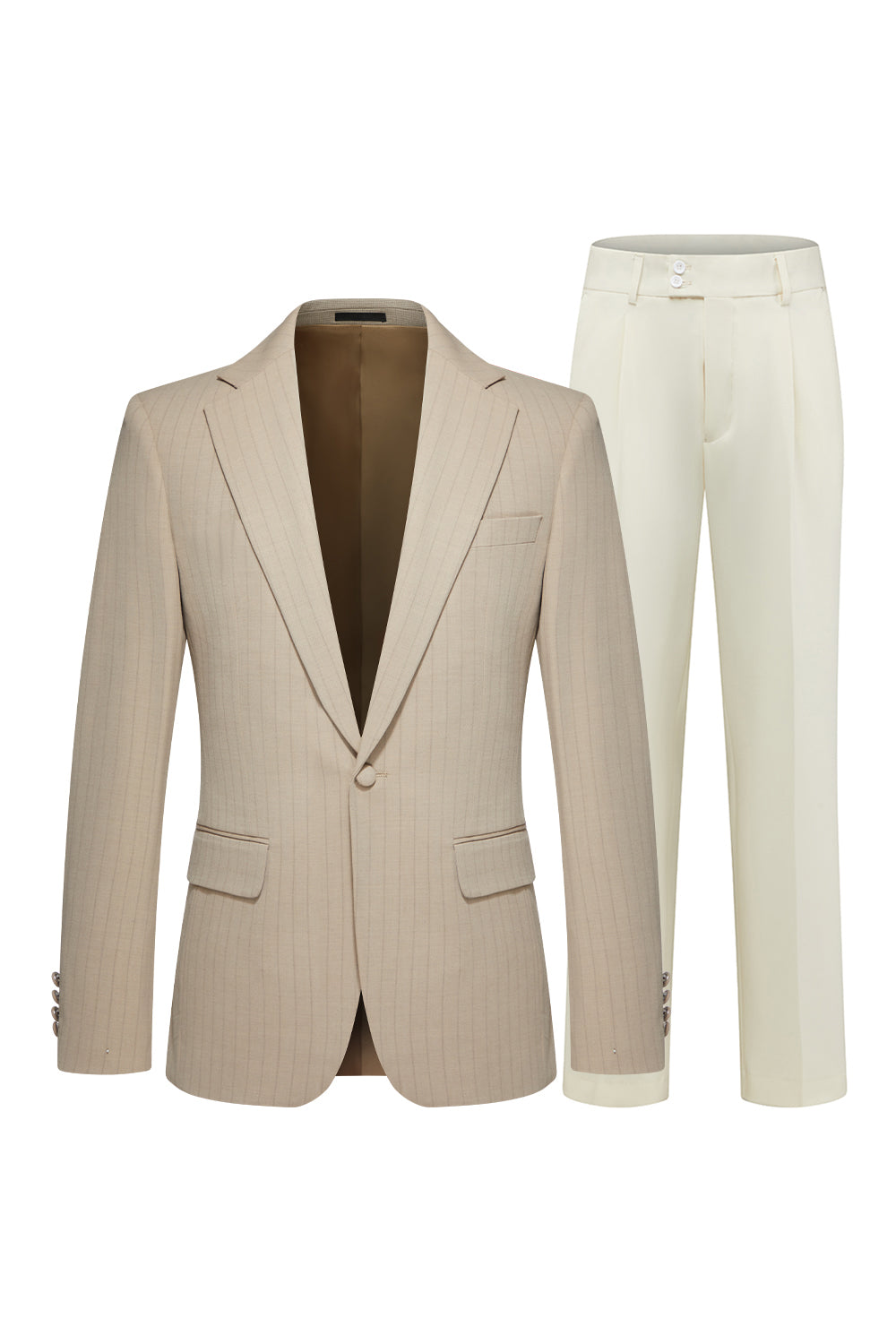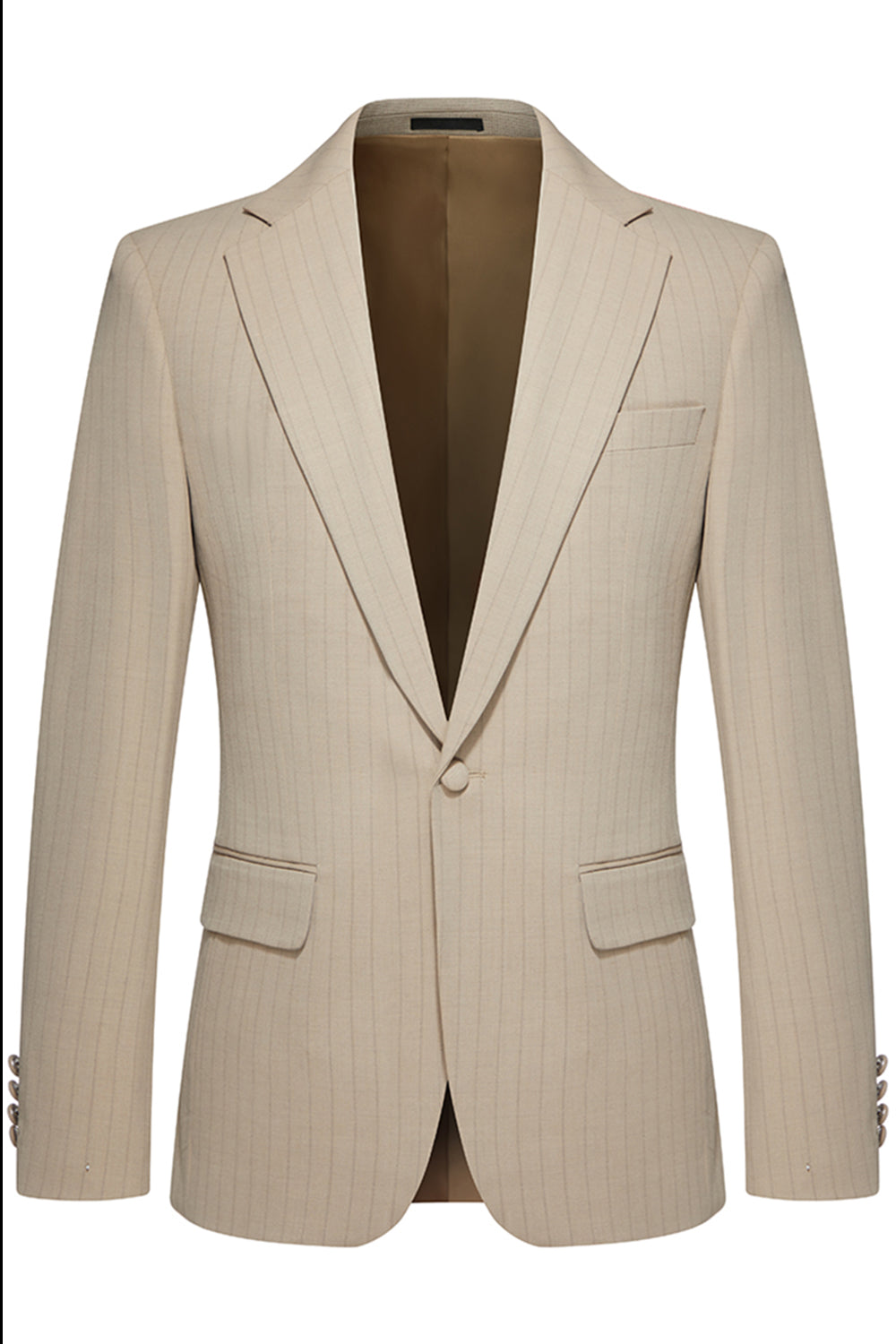 Khaki genotched eenknops herenpakken met revers en één knoop