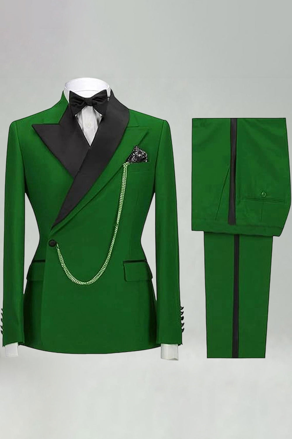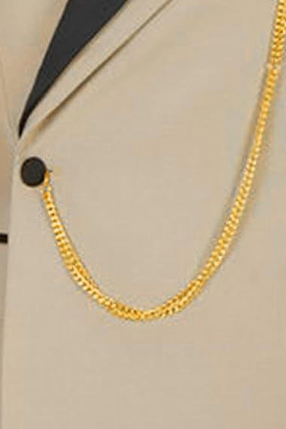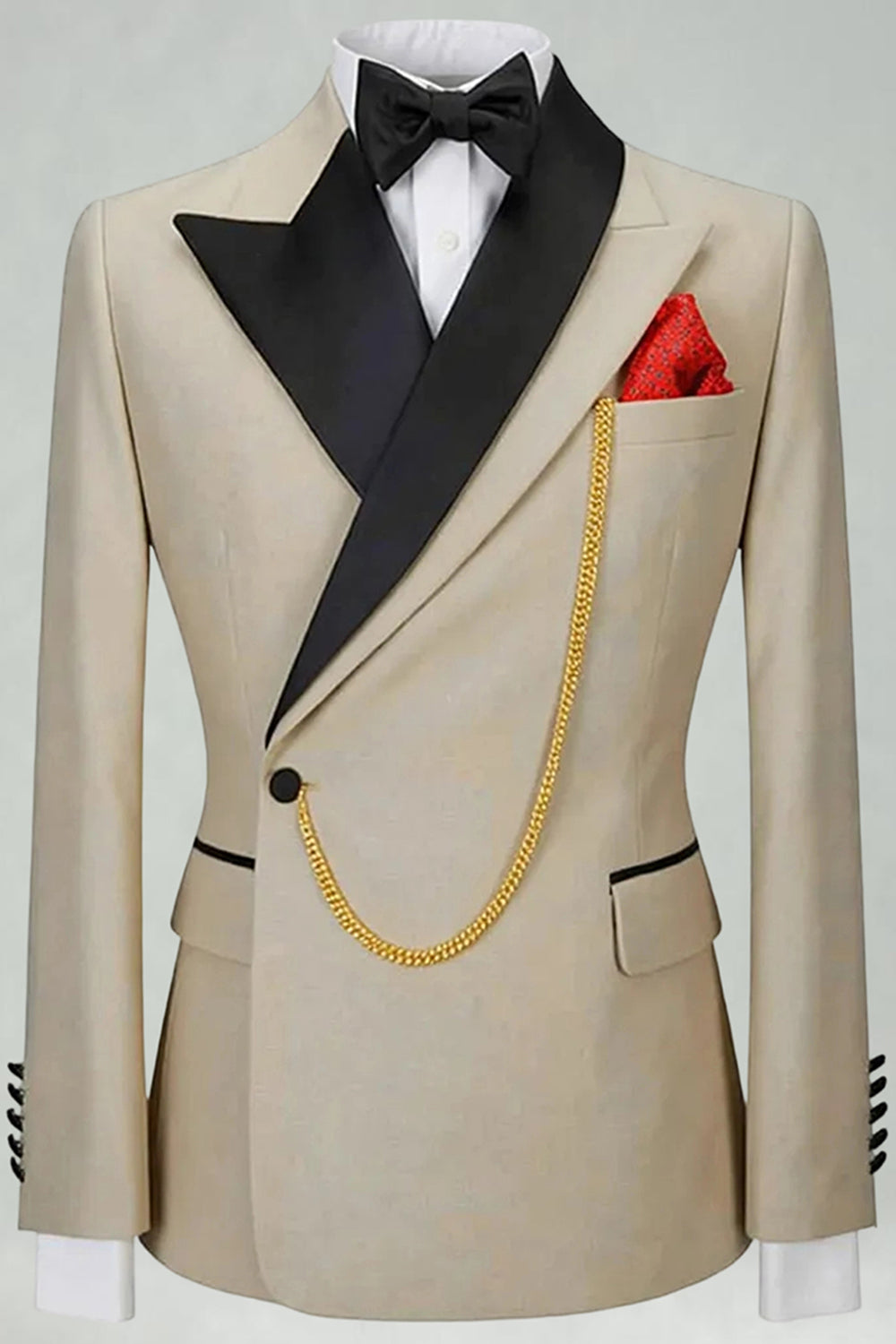 Slim Fit 2-delige Khaki Peak Revers Herenpakken