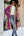 Fuchsia en oranje pluizige lange jas van imitatiebont
