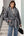 Mix Black Grid Peak Lapel Dames Jas met parelmoer