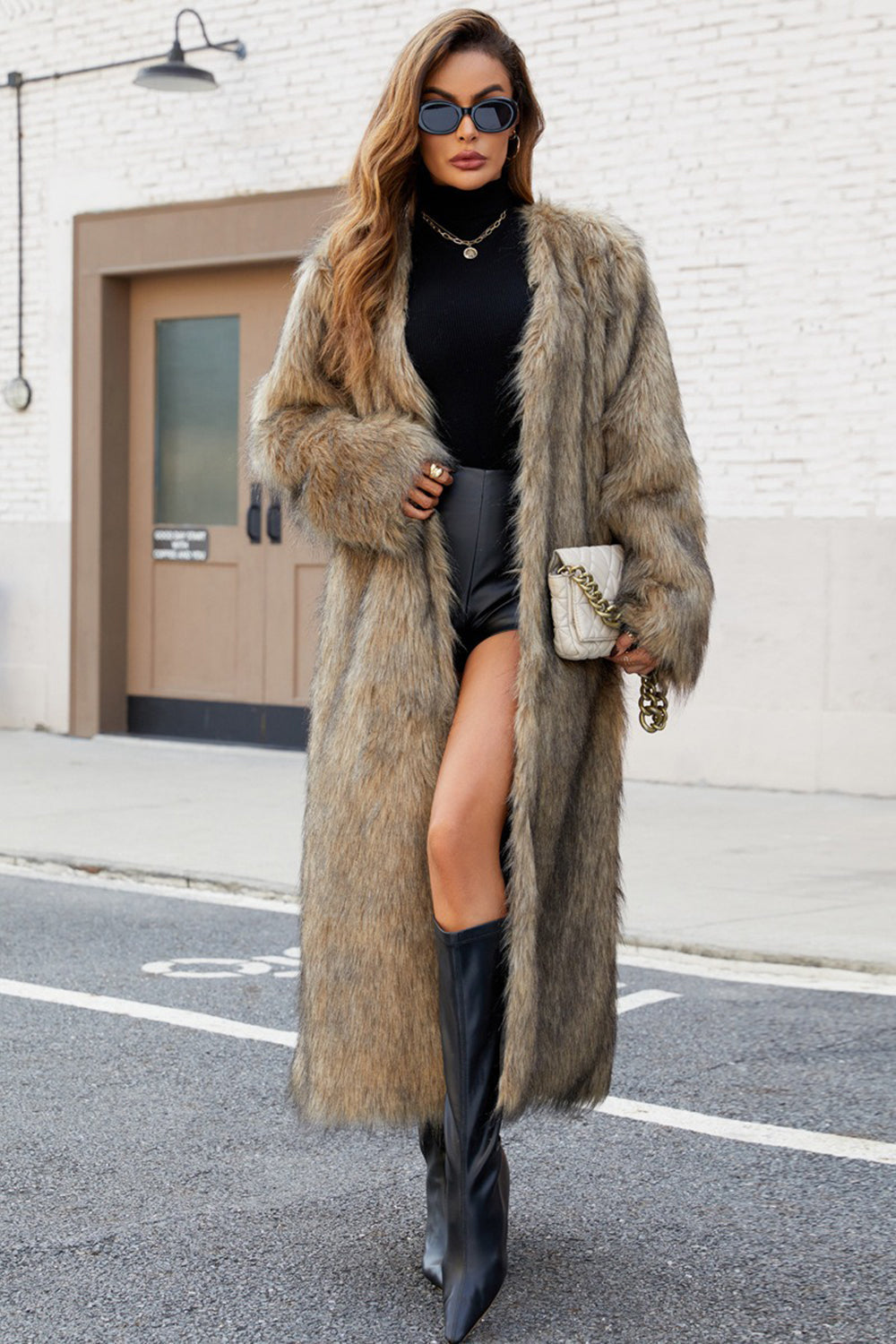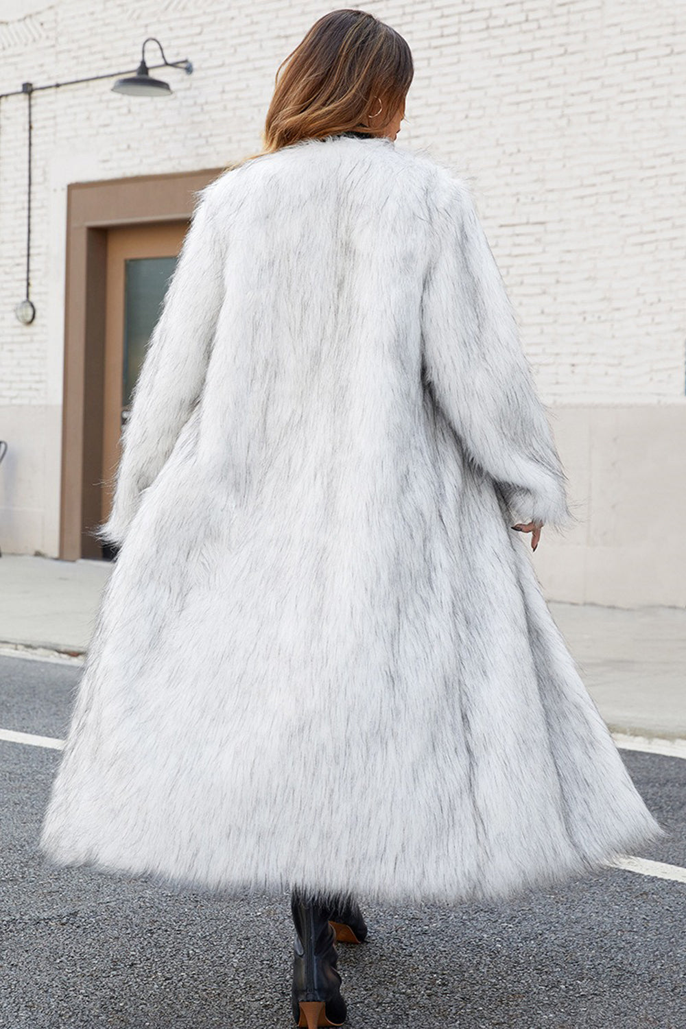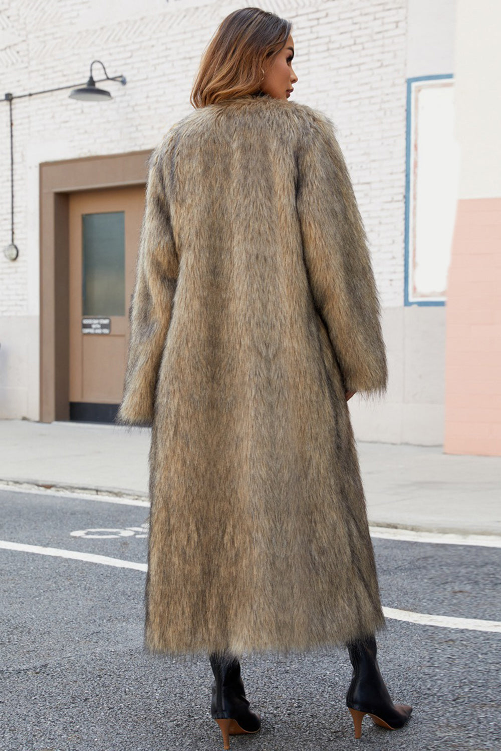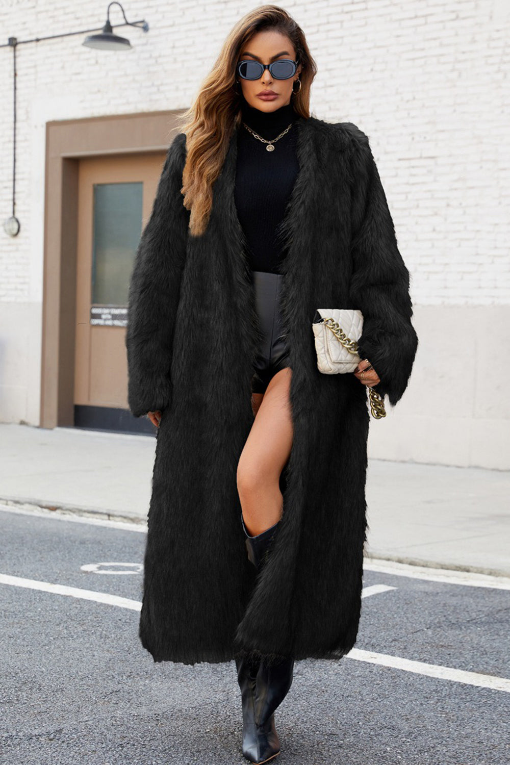 Zwarte nepbont vrouwen lange winterjas