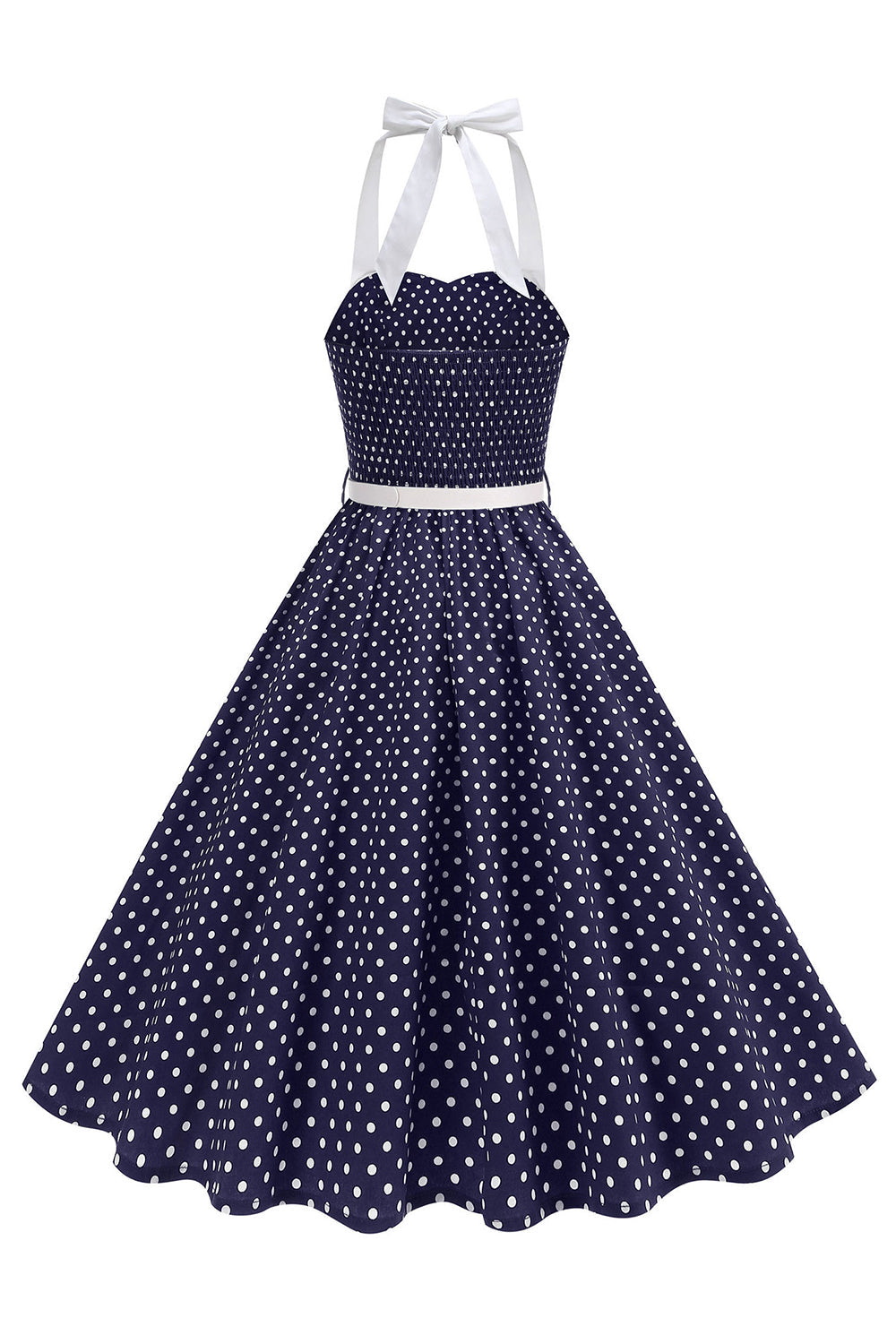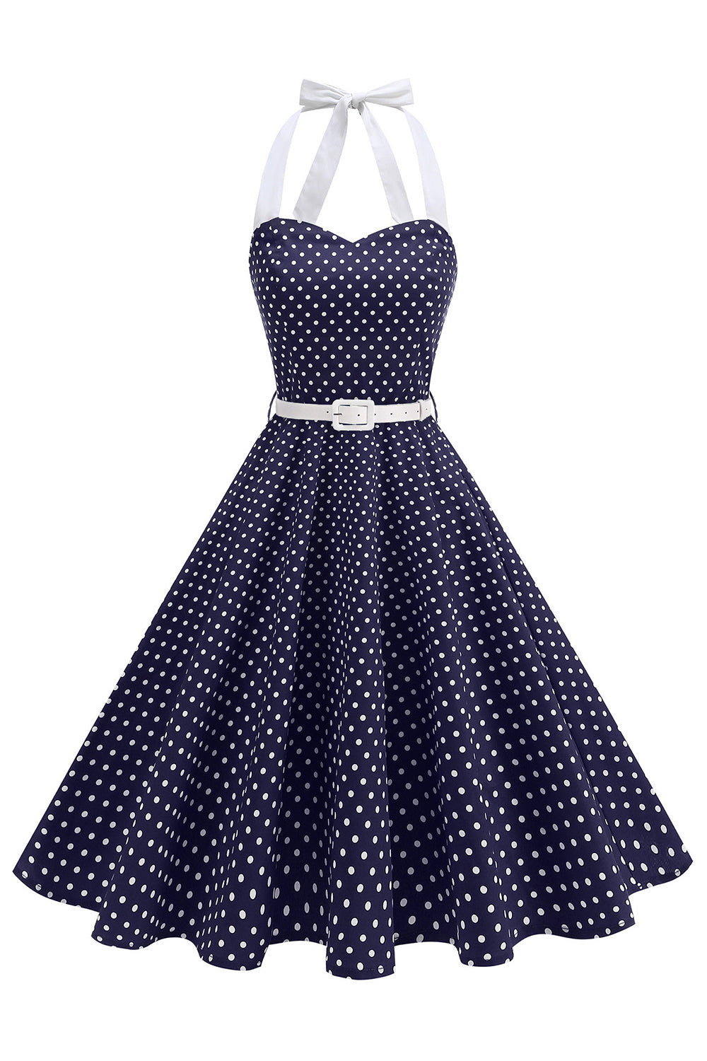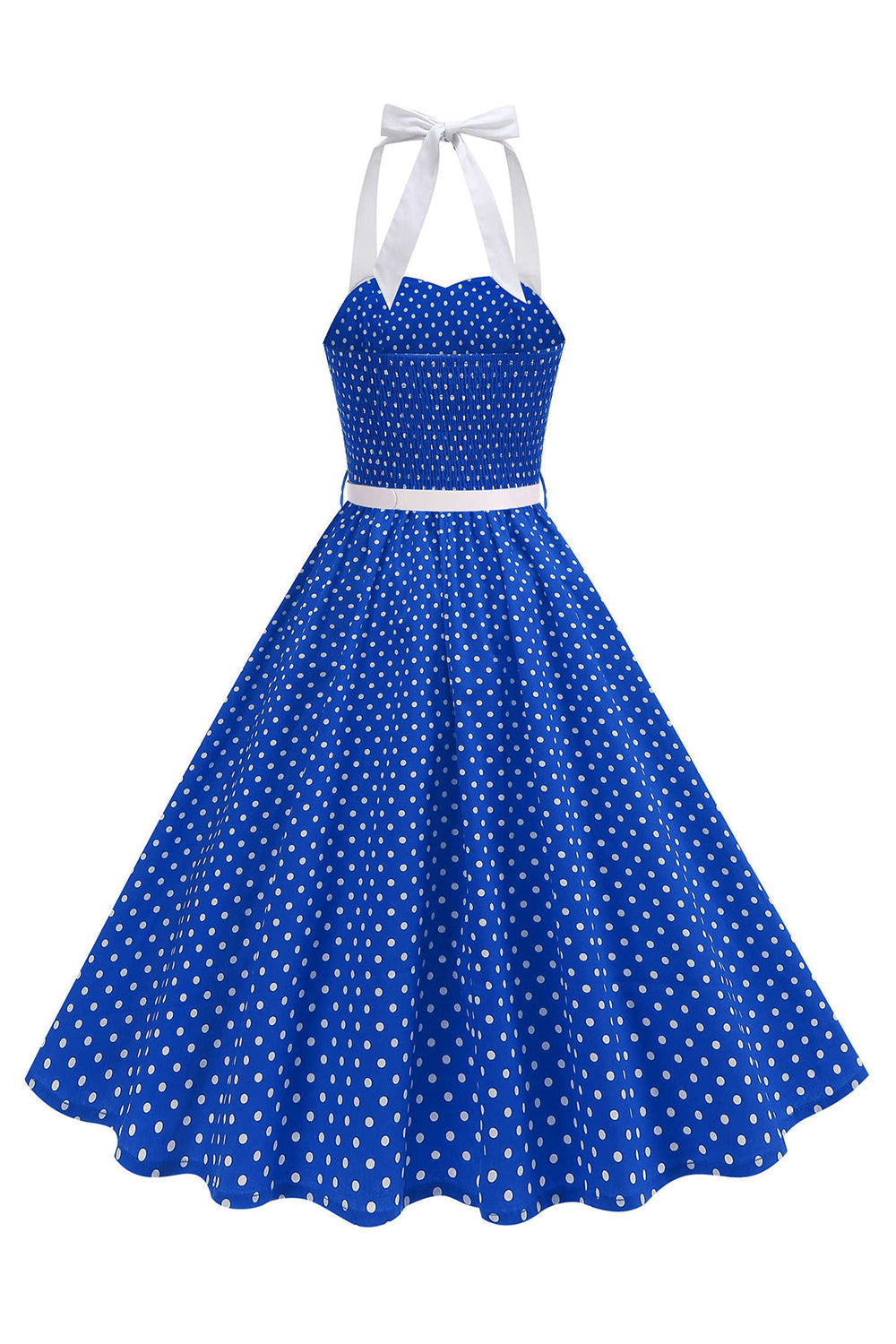 Halter Polka Dots Lichtblauw A-lijn Jurk uit de jaren 50